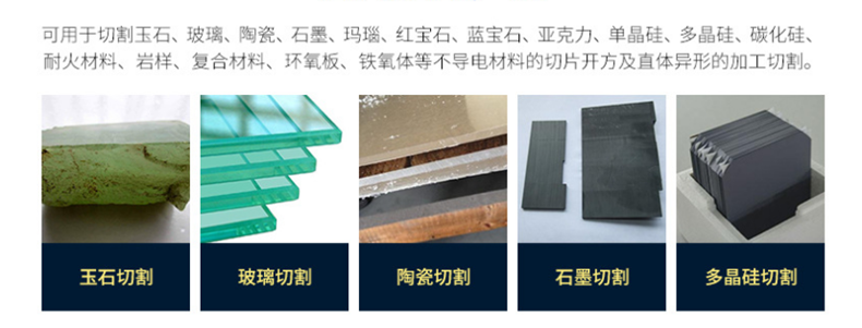 主要用于切割磁性材料、水晶、陶瓷、化合物、氧化物、紅藍寶石、單晶硅等各種硬脆性材料。